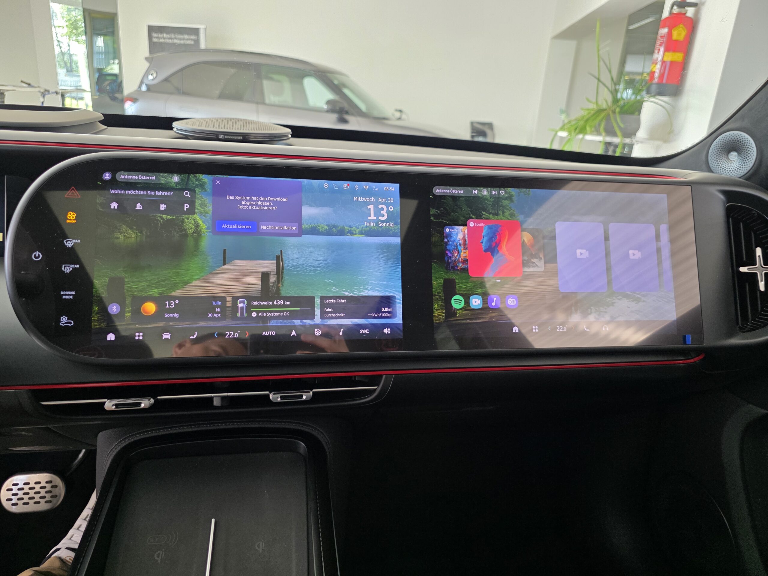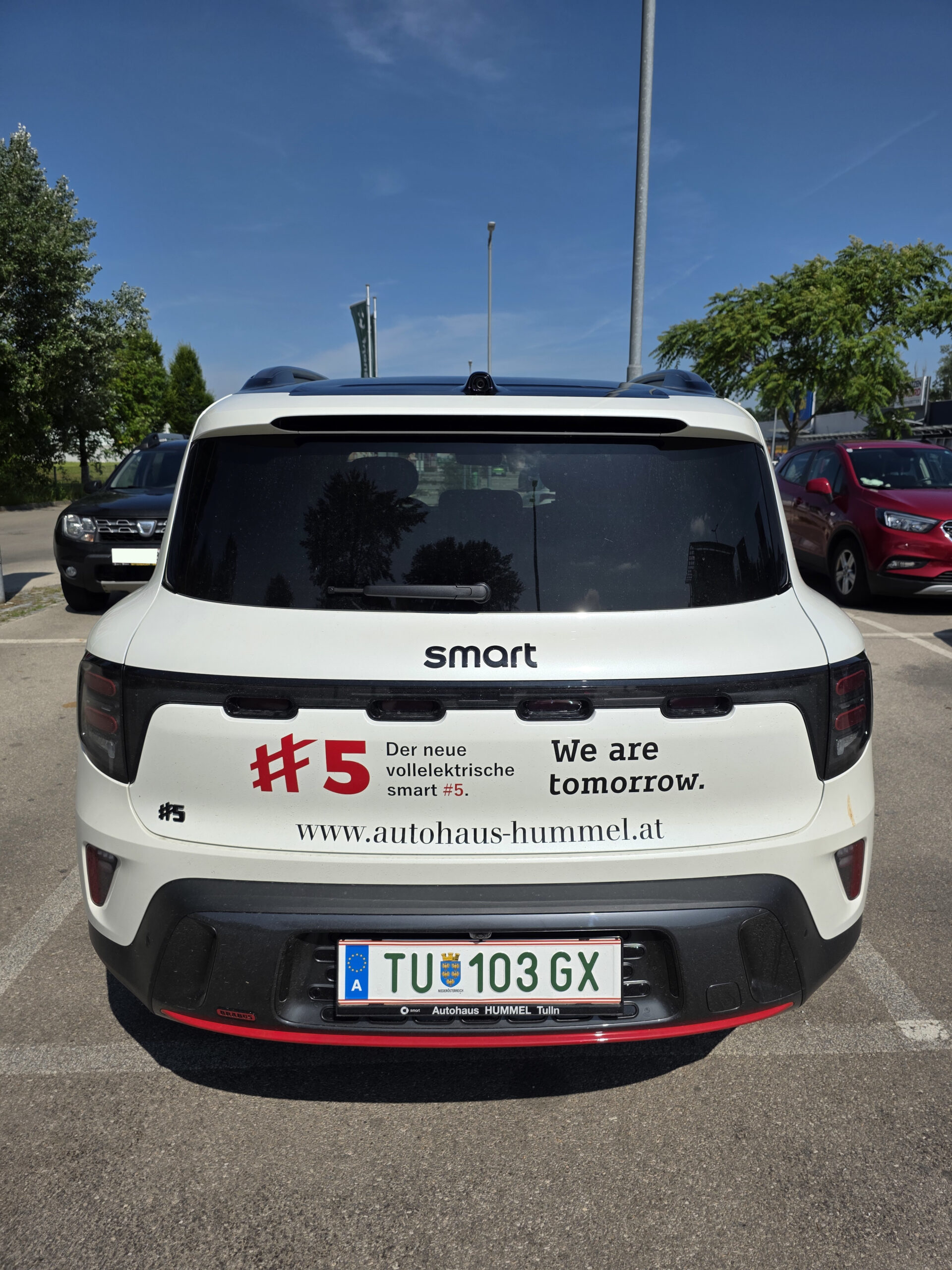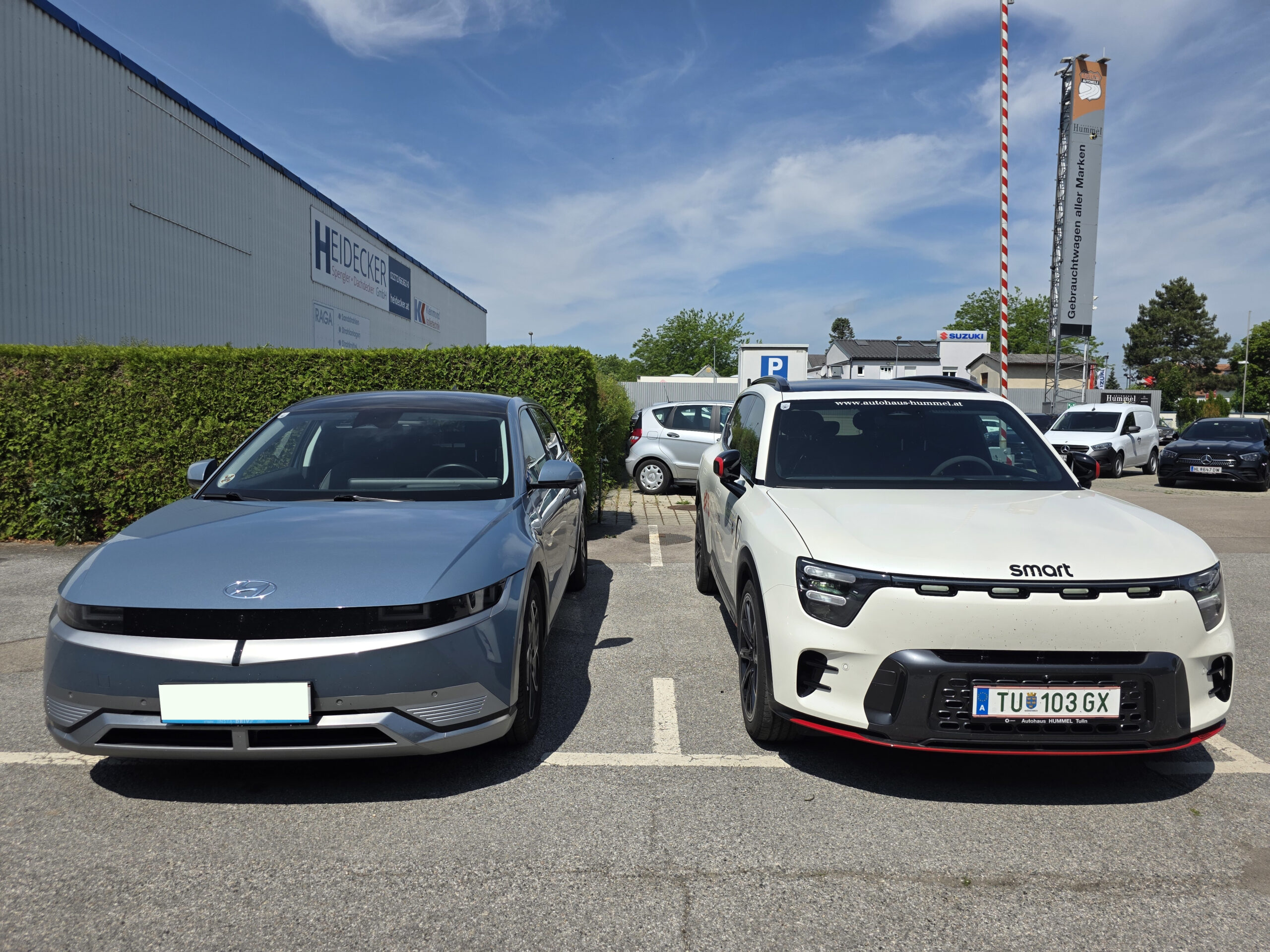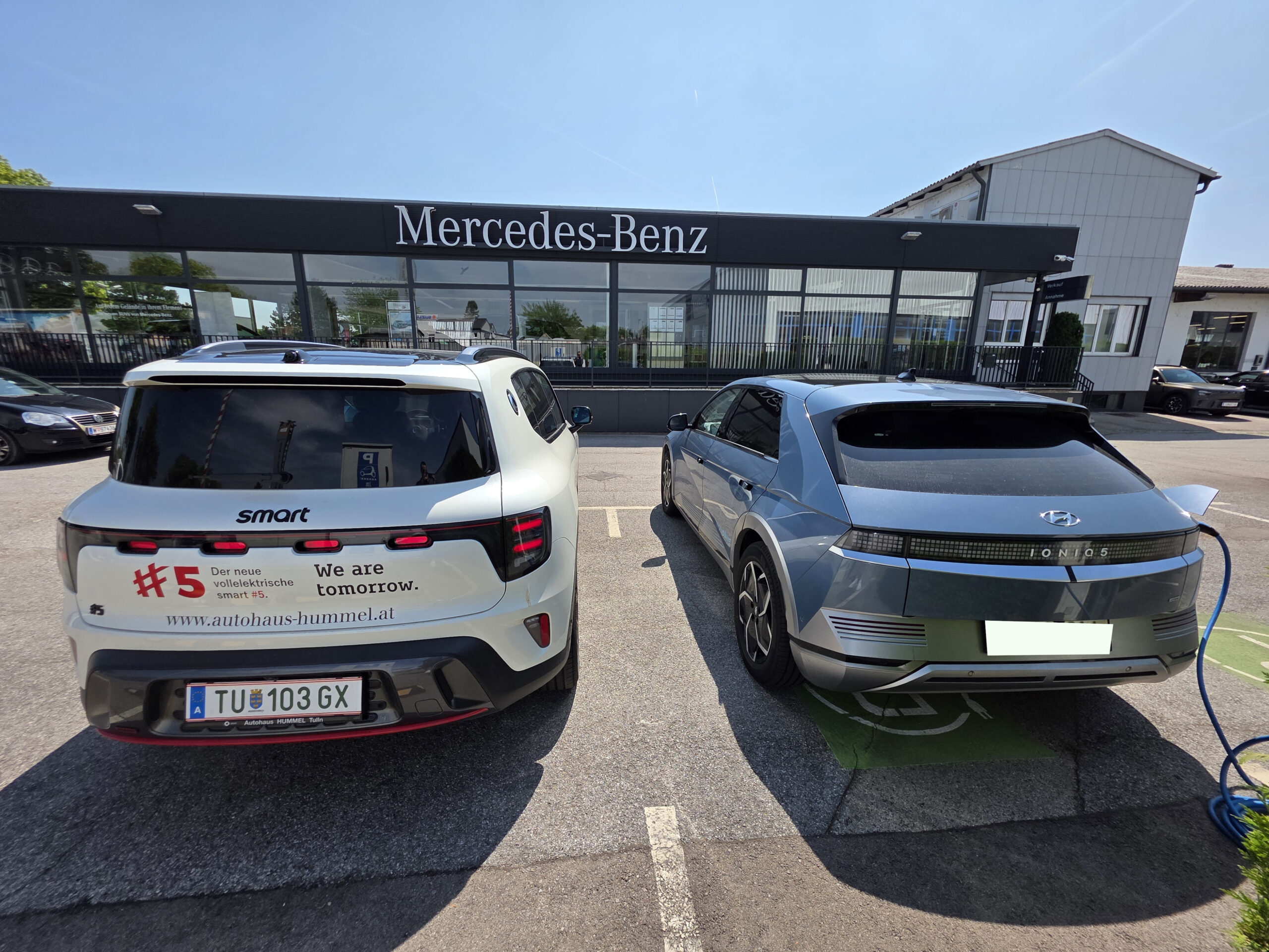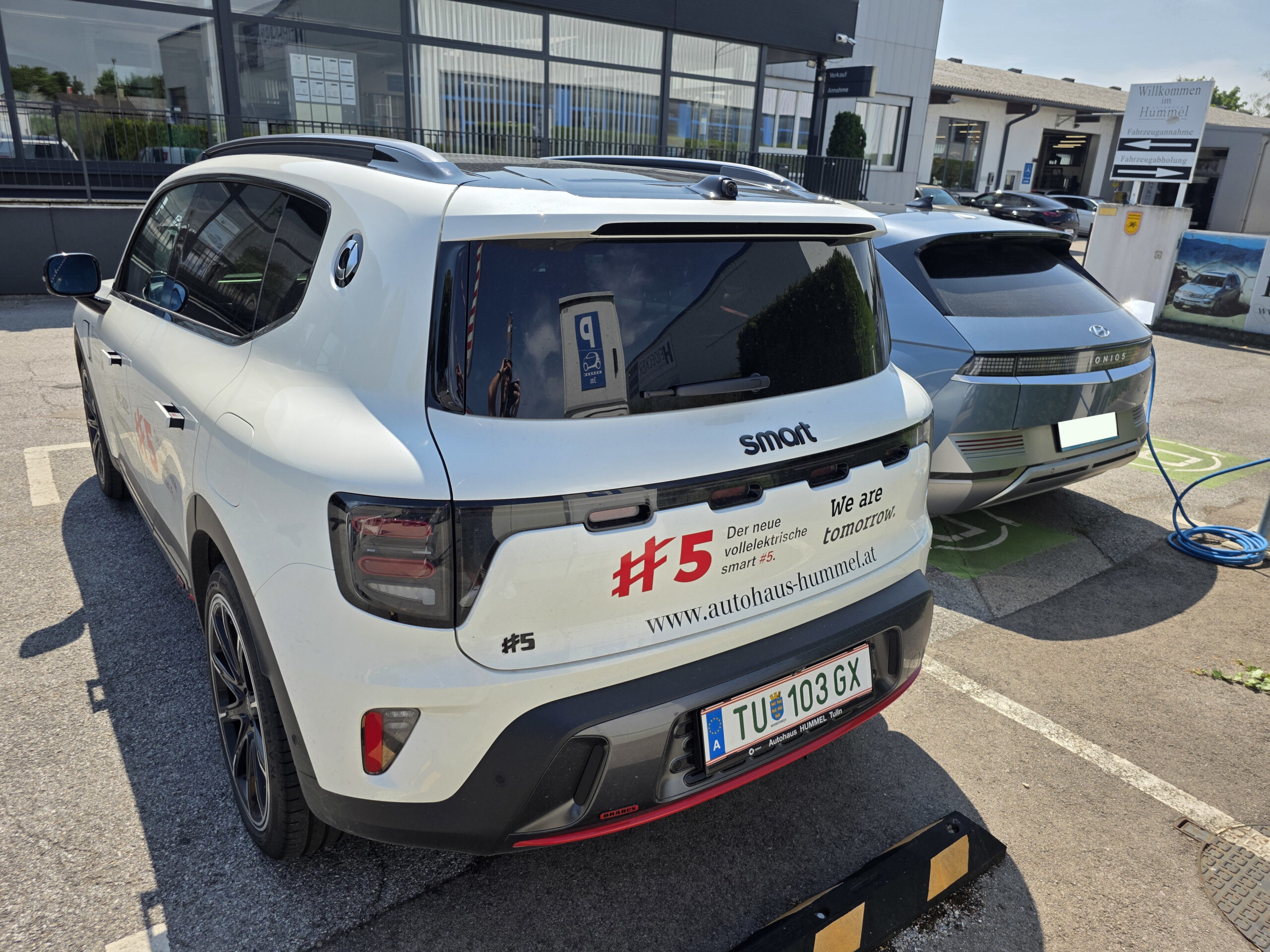 Der Smart #5 (Details wieder auf evkx.net) ist technisch gesehen ein sehr interessantes Auto. Super Ladegeschwindigkeit, riesiger und sehr hochwertig anmutender Innenraum (zumindest in der Brabus Ausstattung, die ich zur Probefahrt beim Autohaus Hummel in Tulln hatte). Der erste optische Eindruck von innen war umwerfend, im Vergleich kommend vom vielen Hartplastik im IONIQ 5, vielleicht auch wegen der beiden großen, hochauflösenden Displays in der Mitte bzw. für den Beifahrer. Auch belüftete Wireless Charger gibt es für zwei Handys, das fehlt beim IONIQ 5 definitiv und ist nicht nutzbar bei mir, weil das Handy immer überhitzt. Eine Belüftung gibt es auch im Ablagefach der Mittelkonsole. V2L kann er auch. Smart.