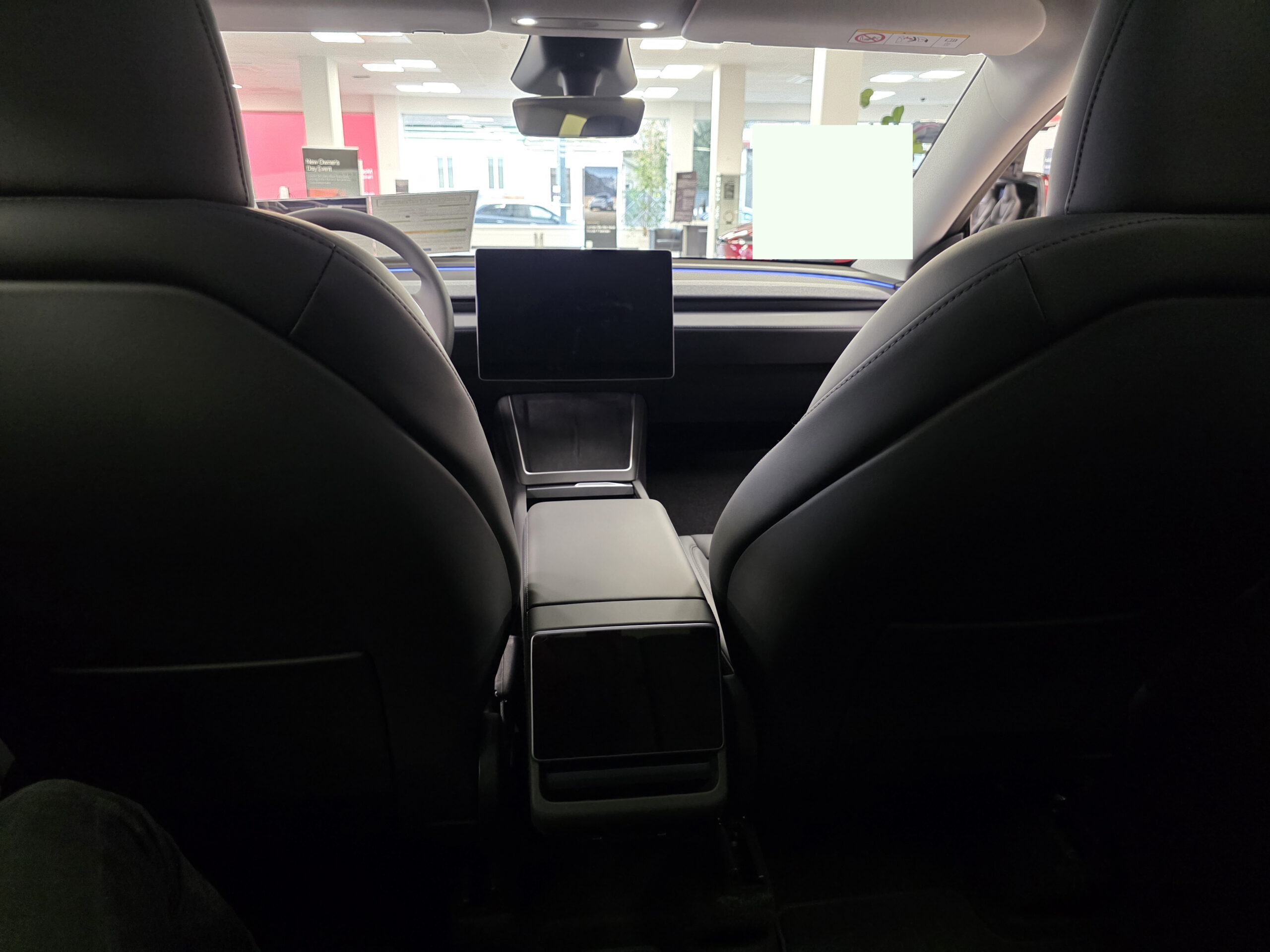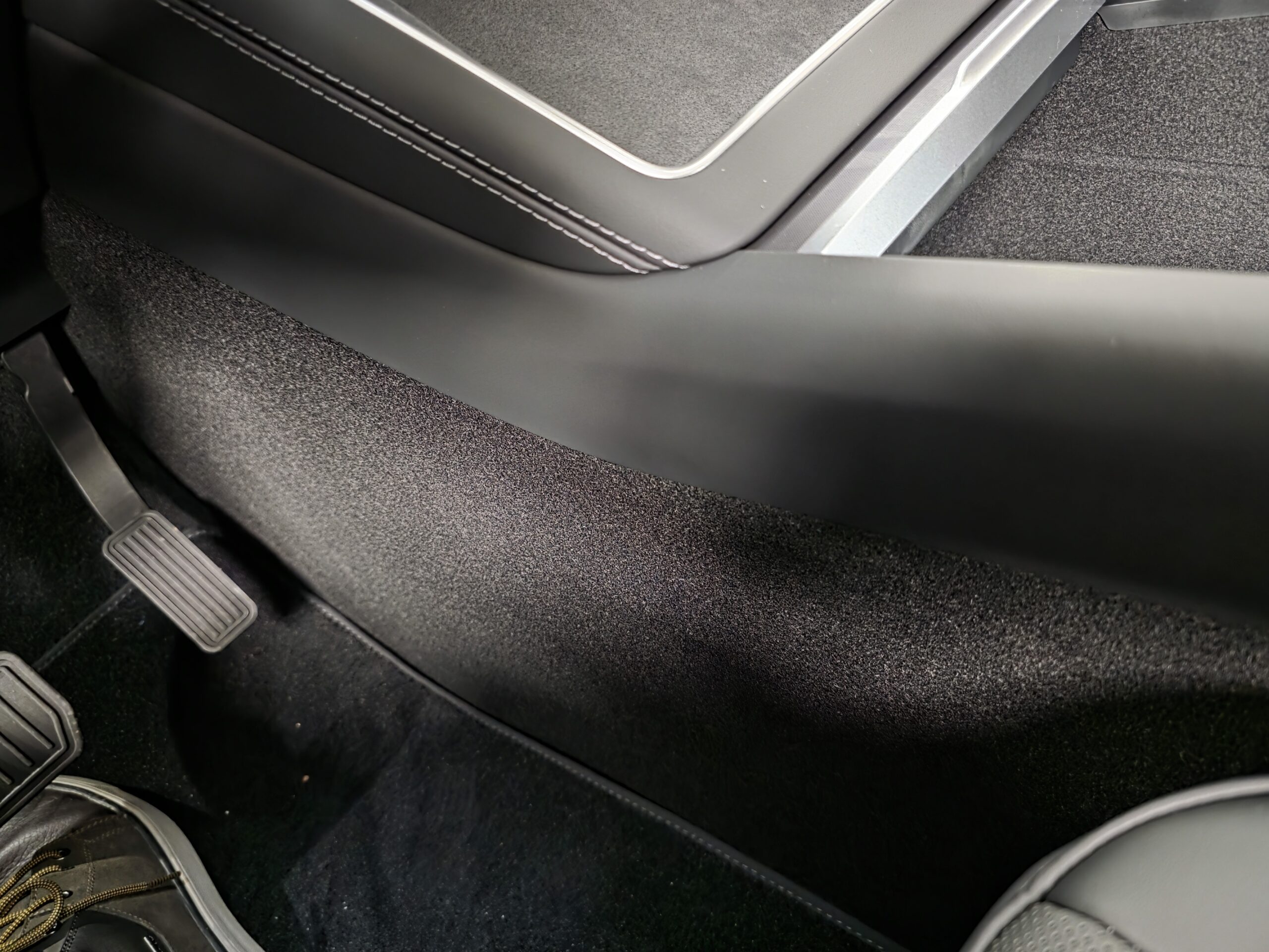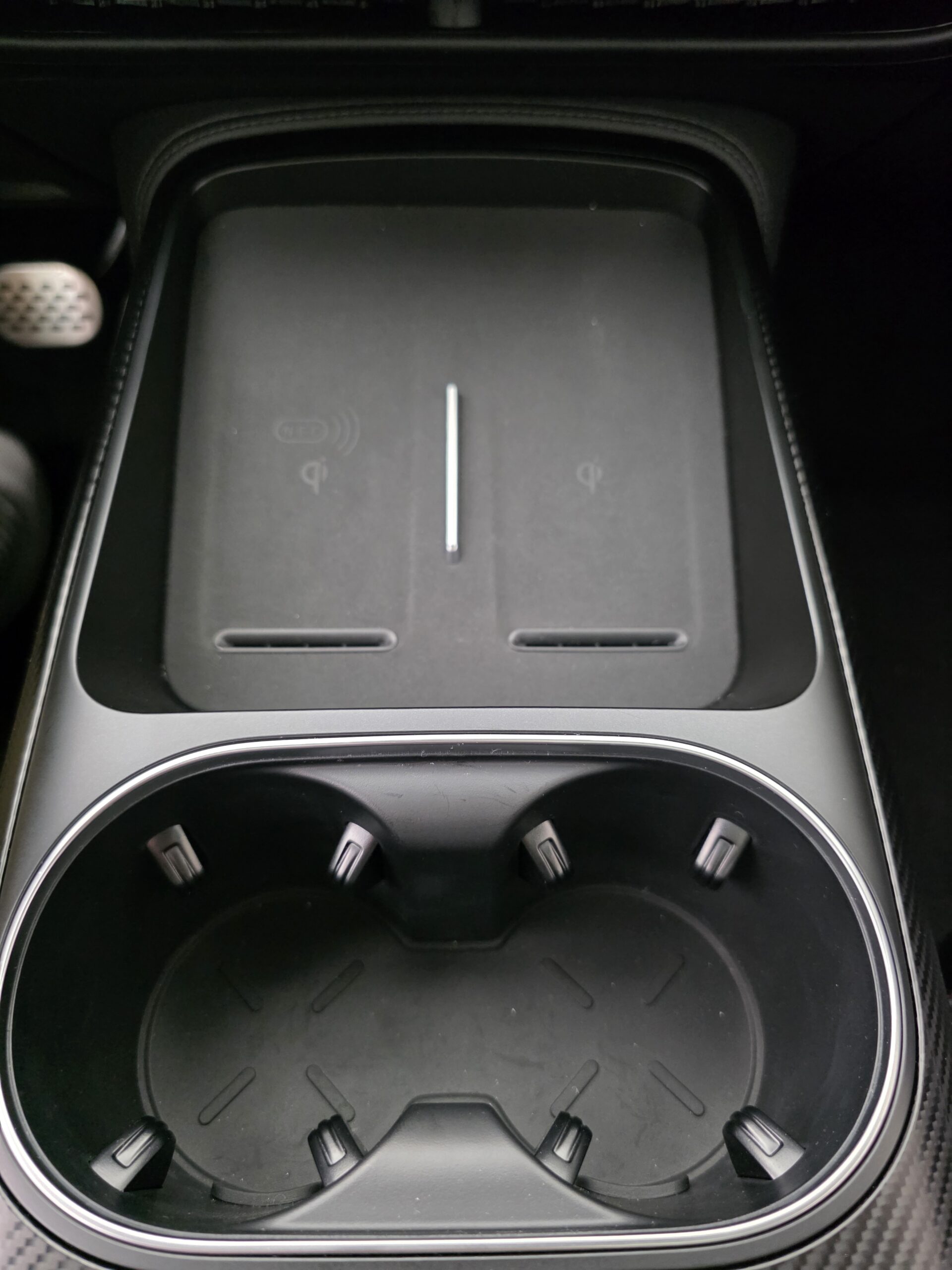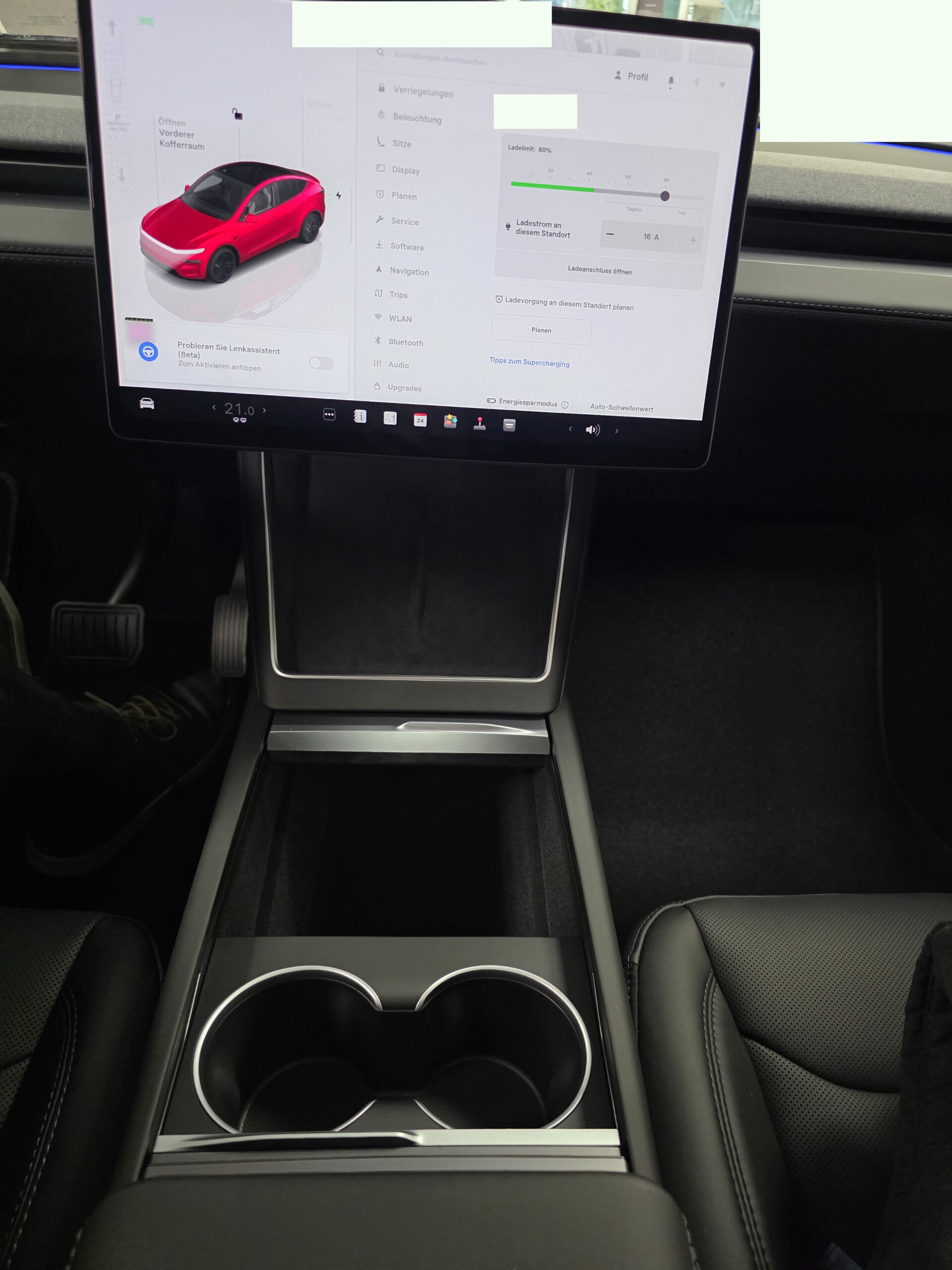 Positiv aufgefallen ist auch die Mittelkonsole mit den Schiebefächern und sehr viel Stauraum generell. Aber ob diese Schiebe-Verschlüsse praktikabel sind, kann ich nicht beurteilen. Wir haben auch Handys ohne Wireless Charger bzw. da Tesla keine Lüftung für die Ladepads hat, müsste ich auch auf Kabel zurückgreifen, wie routet man die dann durch? Oder bleibt dann eh wieder alles offen? Das Handschuhfach ist sehr minimal & klein gestaltet und auch nur über das Display zu öffnen (musste eine Weile suchen :D). Der Rückspiegel (innen) ist auch nur ein kleines Teil zur Zierde, nach hinten sieht man durch die kleinen Scheiben trotz Panoramaglasdach eh nicht wirklich viel raus. Im dort ausgestellten Model 3 hatte ich weitaus mehr Sicht nach hinten – das war unerwartet. Ein digitaler Rückspiegel wäre hier mal ein Upgrade – gibt es immerhin nachträglich von Drittanbietern. Genauso wie das Front-Dashboard/Display, kann man auch extra wo kaufen und selbst einbauen. Kostet halt wieder extra, was andere dabei haben.