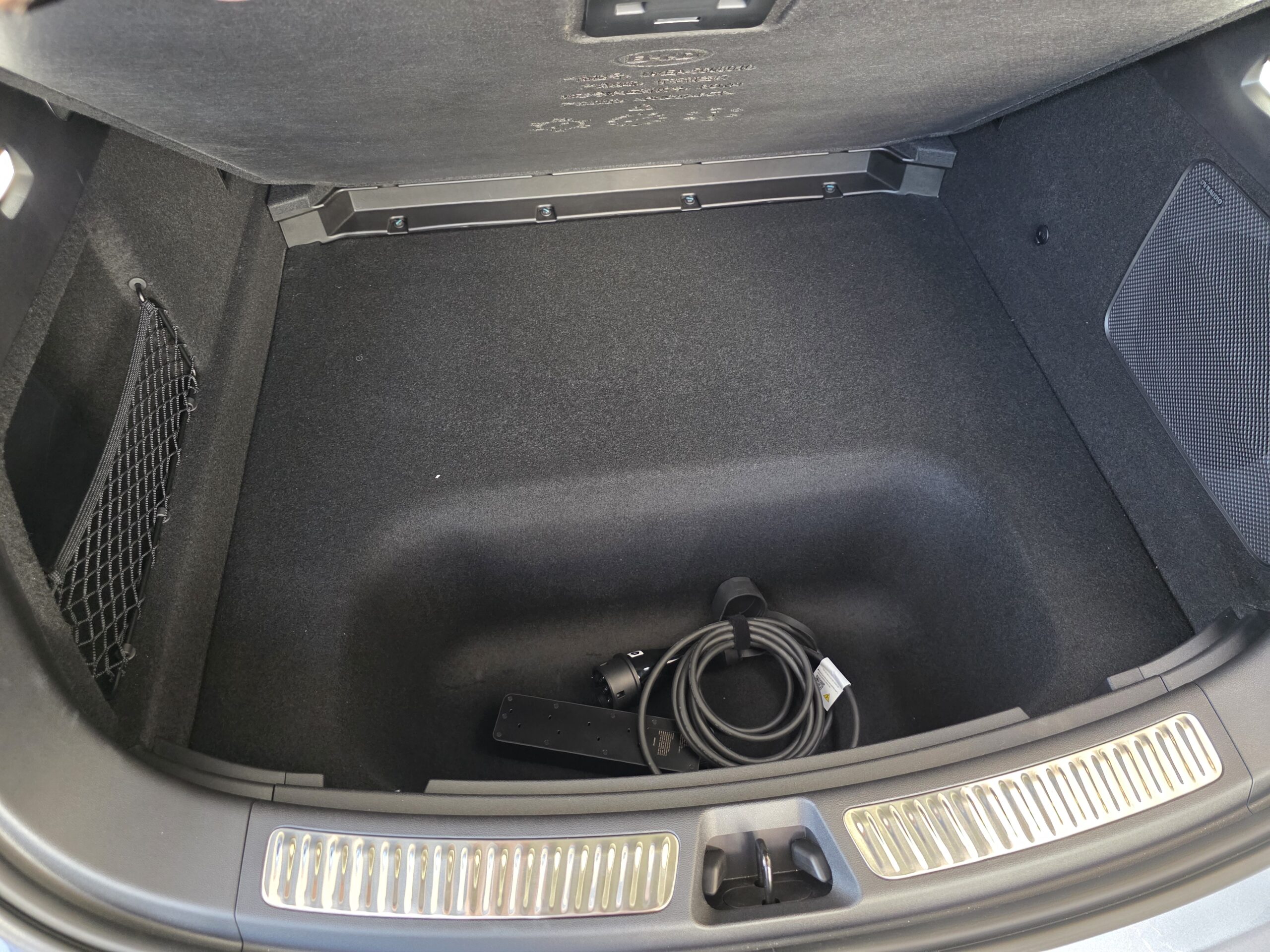 Vom Platz innen her hatte ich trotzdem irgendwie etwas weniger Raumgefühl als beim IONIQ 5 und der Kofferraum ist viel zu klein geraten für das von außen riesig wirkende Schlachtschiff. Da gibt es definitiv für mich einen Minuspunkt, auch wenn dafür ein großer Frunk mit 47 Litern Kapazität existiert. Der Kofferraum ist nicht so breit und es fällt sofort beim Öffnen auf, weil durch die Karosserie/Form anscheinend einiges innen verloren geht. Wenn man den Einlageboden im Kofferraum entfernt und den größeren Frunk rechnet, kommt aber wieder fast das gleiche Volumen raus.
