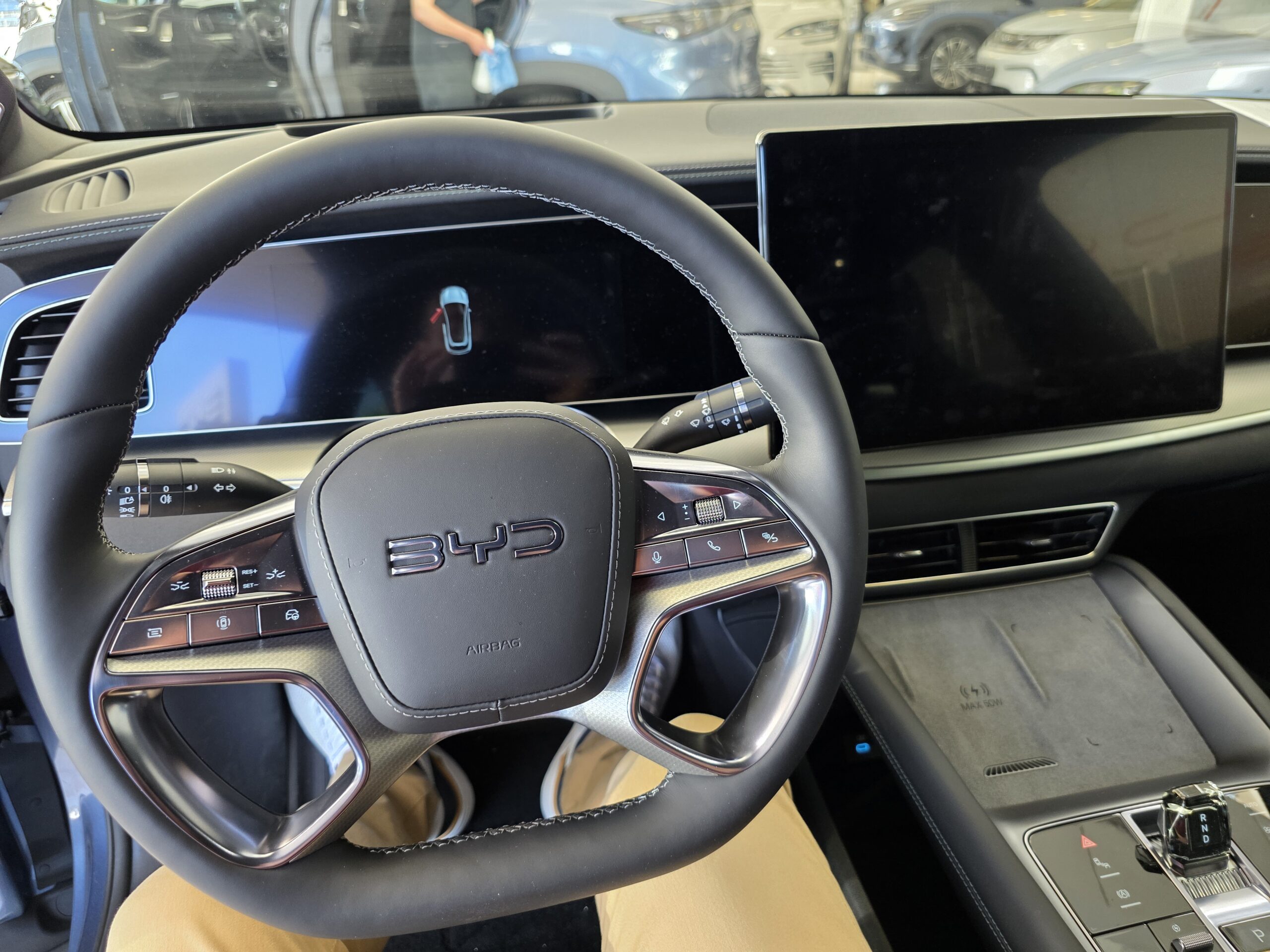 Hier mal ein paar Fotos vom BYD Sealion 7 aus dem Schauraum bzw. später noch eine andere Farbe in weiß von der Probefahrt und wieder Abmessungen des Kofferraums.