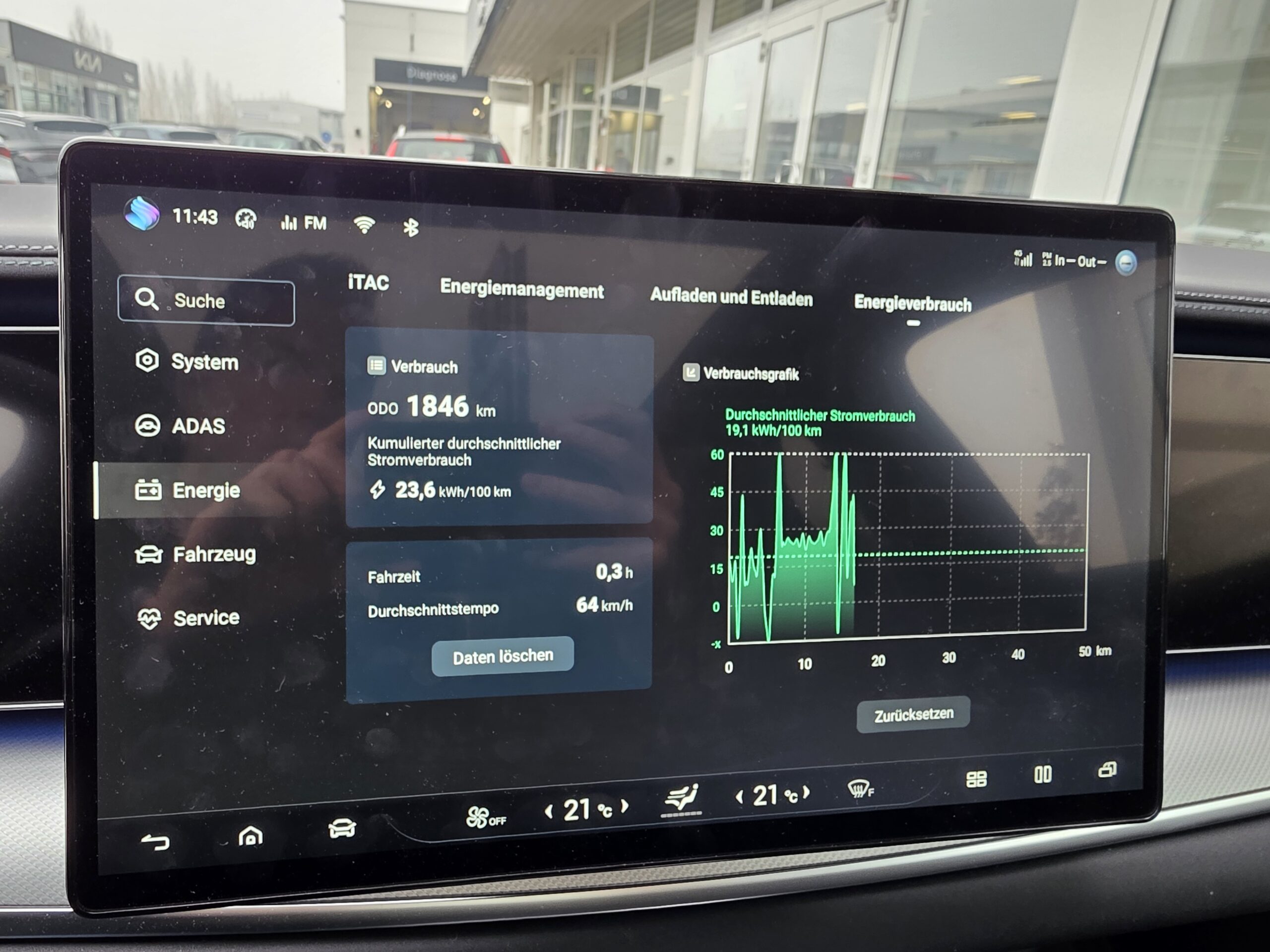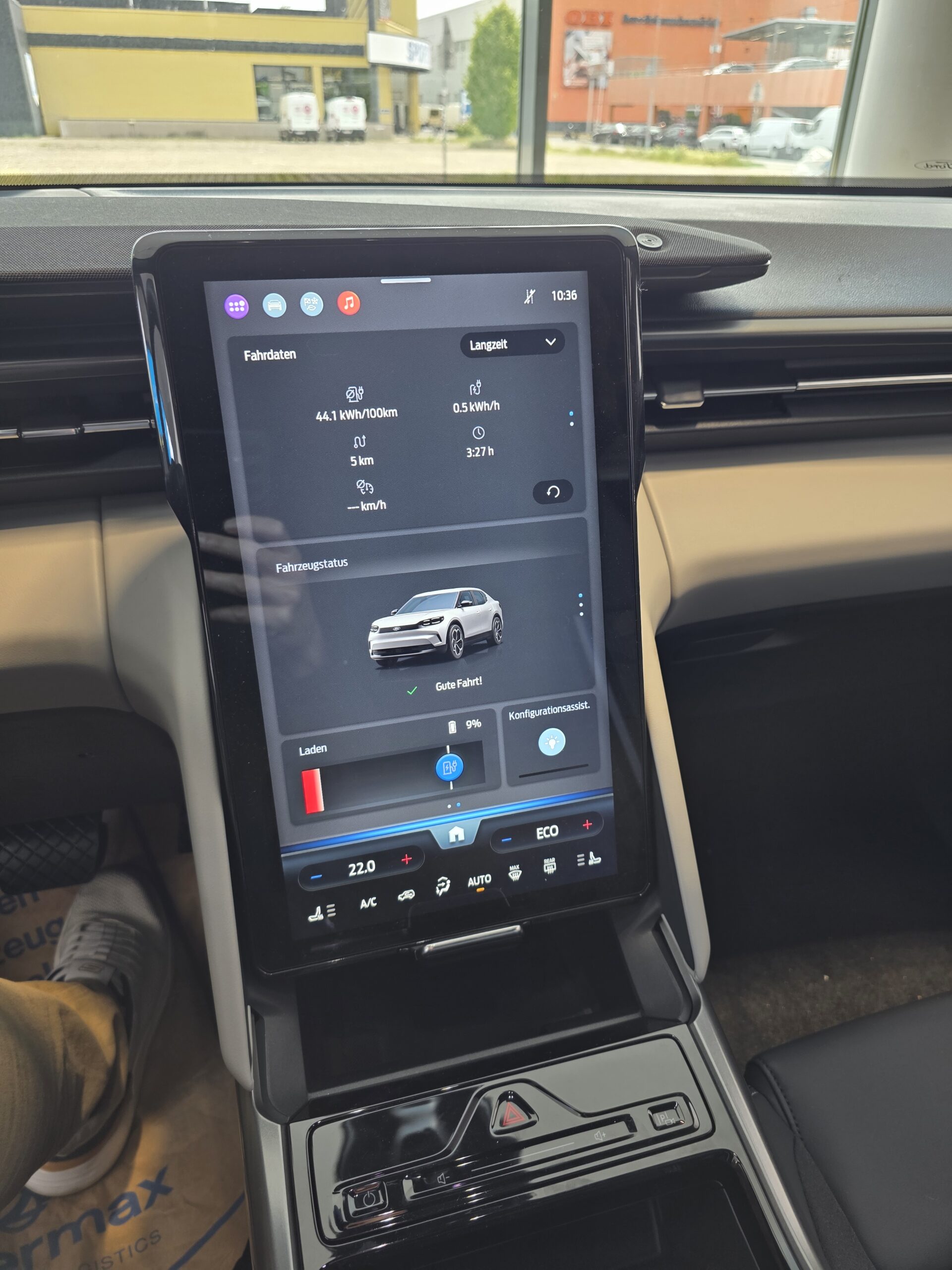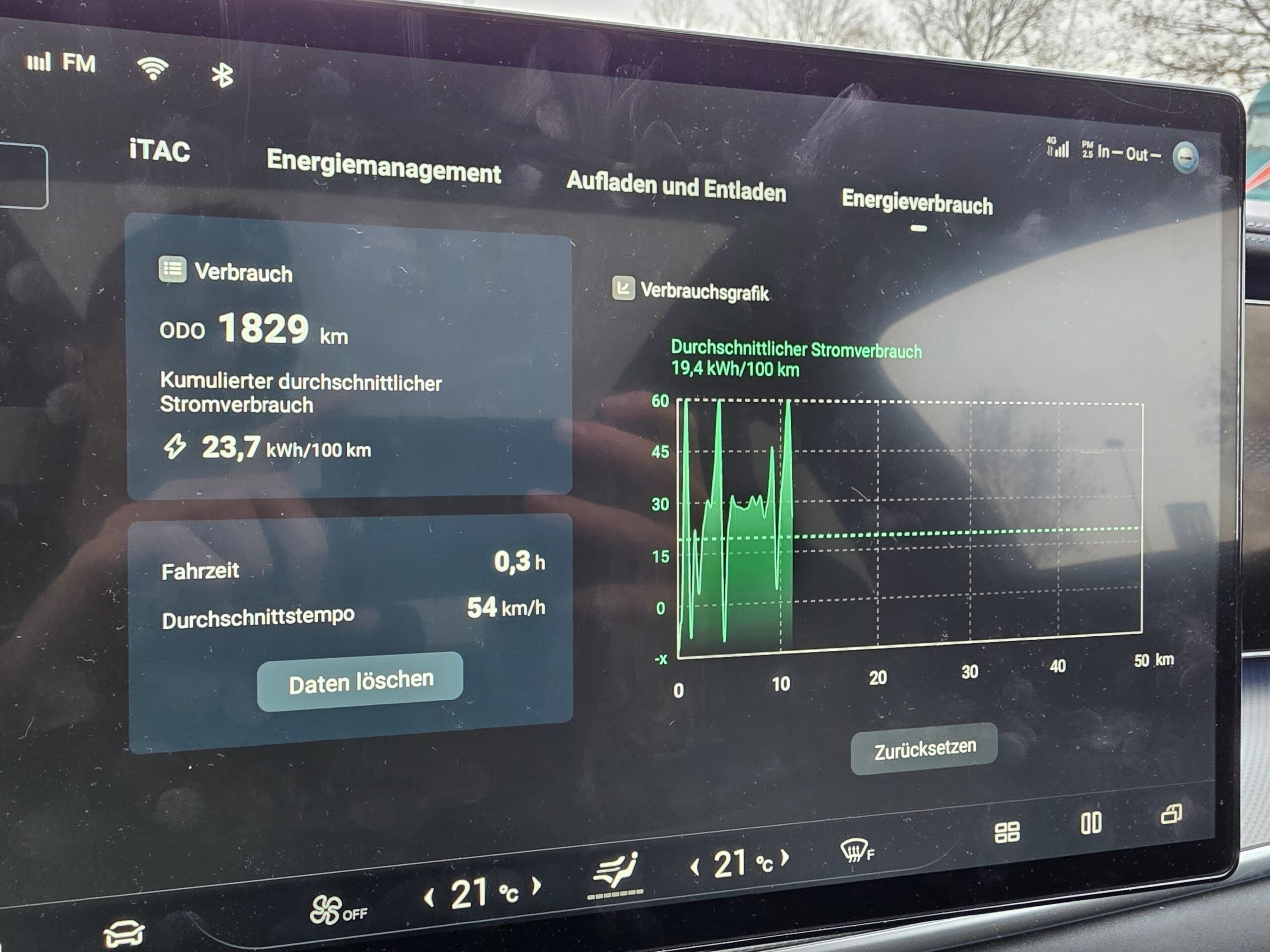 Die Probefahrt an sich hat auch gezeigt, dass der Wagen jetzt nicht unbedingt, bzw. eigentlich wie erwartet, der effizienteste ist. Fairerweise muss man ergänzen, dass es auch verregnet und kalt war und der Wagen draußen stand, entsprechend auch ausgekühlter Akku.