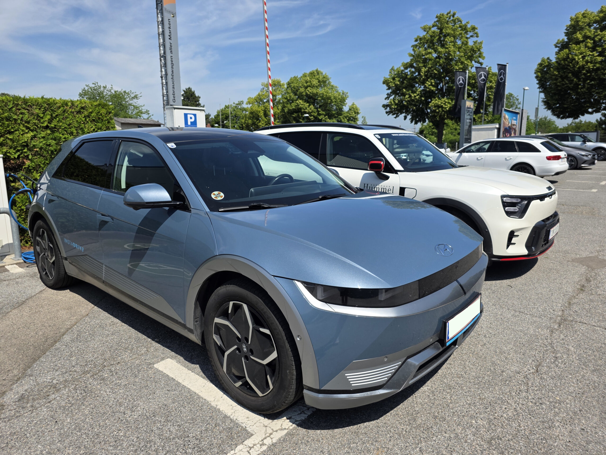 Die Probefahrt führte vom Autohaus Hummel nach Krems über die Autobahn und dazwischen die Zubringerstraßen/Landesstraßen bzw. durch Tulln. Die Gesamtstrecke (hin und retour) war 83,9km bei einem Verbrauch von 21.8 kWh/100km und einer Durchschnittsgeschwindigkeit von 74 km/h. Bei der Teilstrecke von 38,2km lag der Gesamtverbrauch laut Display bei 8,3 kWh, die Rückfahrt 9,8 kWh, also 18,1 kWh auf knapp 84km. Ich habe für diese Strecke derzeit keine Vergleichswerte mit dem IONIQ 5, aber der Verbrauch gesamt bzw. auch innerorts war definitiv weniger effizient. Die Fotos liefern auch einen Vergleich direkt mit dem IONIQ 5 bezüglich der Größe / Außenansicht und ein paar Maße für den Kofferraum.