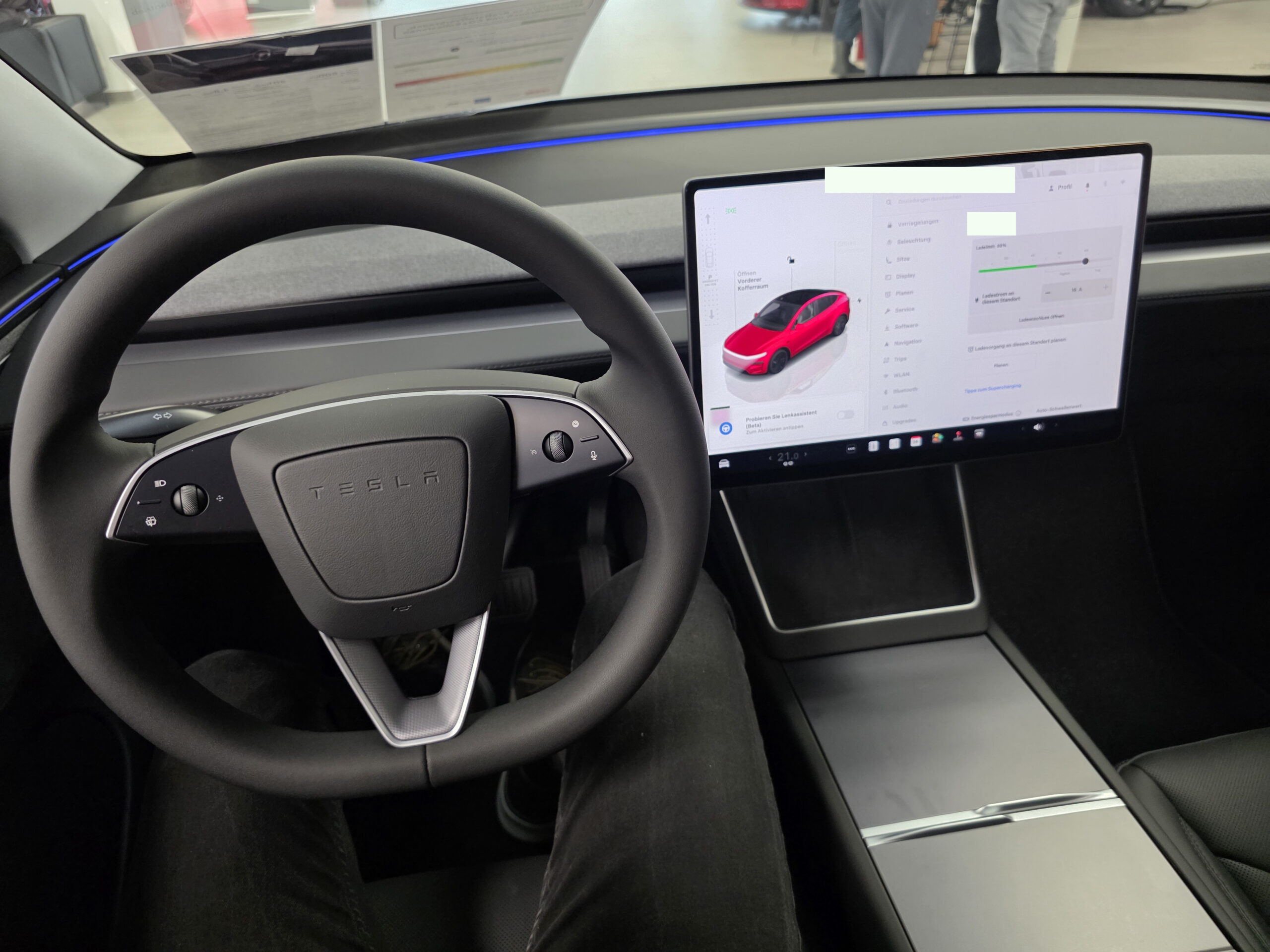 Das ausgestellte Model Y wirkte sehr solide, optisch auch ansprechend für mich. Der geräumige Innenraum ist aber für meinen Geschmack zu kahl gestaltet. Es gibt keine Buttons, kein Front-Dashboard, kein HUD. Alles passiert nur auf dem großen Bildschirm in der Mitte. Dieser ist dafür sehr hochwertig mit super Auflösung und auch vom Touch-Feeling her besser als alle anderen Fahrzeuge bisher. Es gibt keinen Gangwahlhebel. Vor- bzw. Rückwärtsfahren macht Tesla automatisch und soll über die Kameras detektieren, wohin die Reise geht. Manuell kann man zumindest auf dem großen Display auf der linken Seite des Screens dann rauf- oder runterwischen für den Vorwärts-/Rückwärtsgang. Ich konnte das zwar nicht testen, aber in meiner Garage wäre das wohl ein No-Go, da ich zumindest 2-3x reversieren muss, wo auch vorne und hinten bzw. seitlich alles knapp ist. Das würde die Kamera vermutlich nicht erkennen, wohin ich nun wirklich fahren will. Außerdem finde ich das System für schnelles Umdrehen auf der Straße auch ungeeignet. Beim IONIQ 5 hat man den Schalthebel direkt beim Lenkrad und dreht nur daran, was extrem flott funktioniert, auch in potenziellen Gefahrensituationen. Gewiss, man gewöhnt sich wohl an alles.