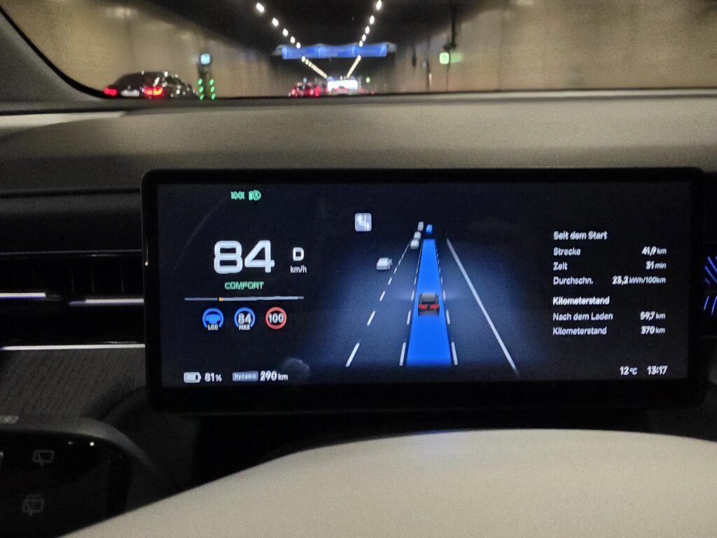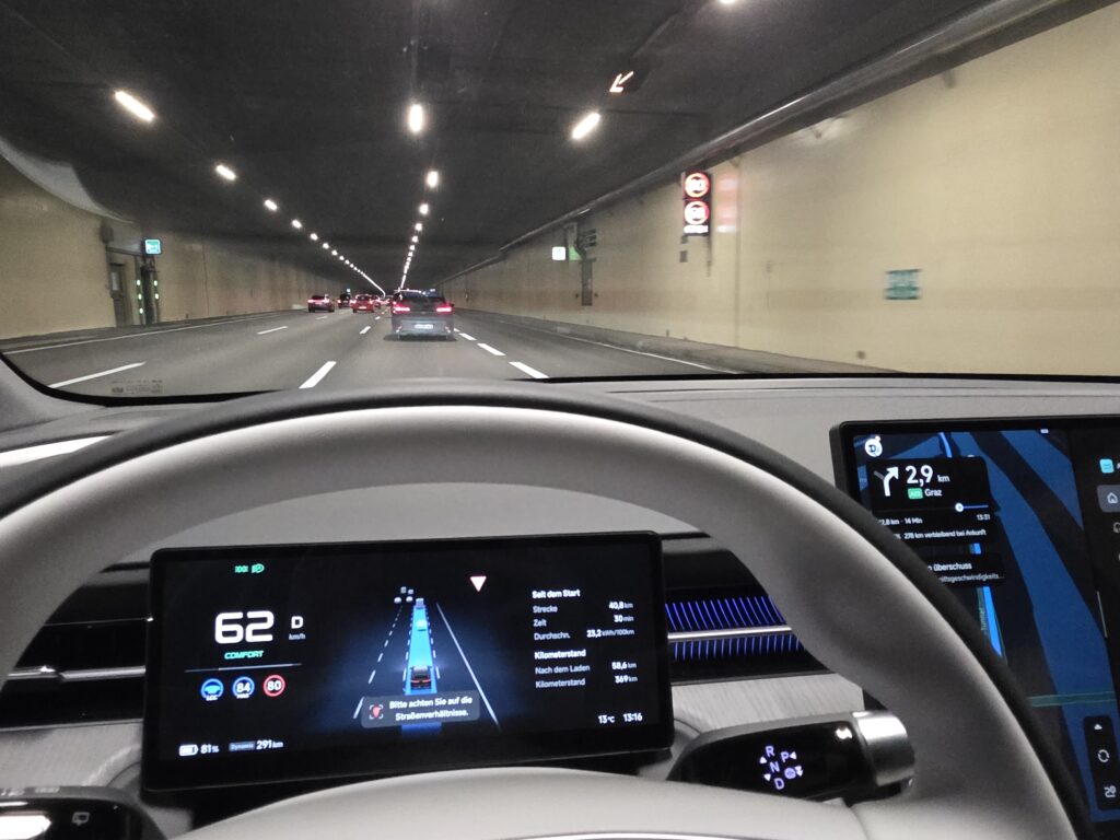 Andererseits funktioniert diese Erkennung aus meiner Sicht beim G6 in der aktuellen SW (5.8) nicht ausreichend gut. Beispiel Kaisermühlentunnel in Wien – der Endgegner für derartige Systeme, und wo auch der IONIQ 5 ständig versagte. Dieser Tunnel hat einerseits Überkopf-Beschilderung, andererseits am Rand diverse Schilder mit 80er Beschränkung für PKW bzw 60 für LKW. Der IONIQ 5 wechselte hier ständig zwischen 60 und 80. Der G6 macht dies zwar nicht, erkennt aber regelmäßig eine 100er Beschränkung, die natürlich komplett falsch ist. Ich schätze, dies kommt von falschen Navi/Kartendaten, da es dort keine 100er Schilder gibt (aber eigentlich auch nie gab).