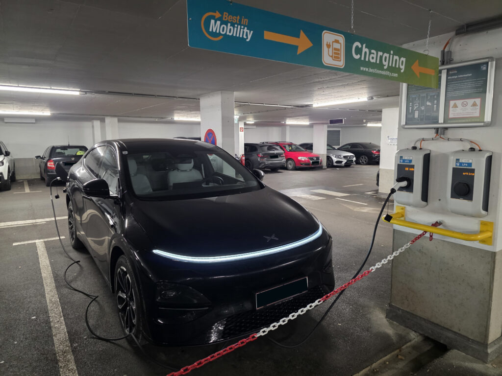 Die ersten AC-Ladungen in einem Parkhaus verliefen relativ unspektakulär. Interessant im Vergleich zum IONIQ 5 ist jedoch, dass man bei letzterem durch das einmalige Aufsperren des Fahrzeugs das Typ2-Ladekabel rausziehen konnte. Der XPENG G6 bleibt hier weiter verriegelt. Auch nach Beenden des Ladevorgangs an der Wallbox selbst, konnte ich das Typ2-Kabel nur an der Wallbox entfernen, beim Wagen blieb es weiterhin verriegelt. Der Wagen hat dies erst nach zweimaligem Aufsperren entriegelt, anfangs dachte ich schon diese Notentriegelung nutzen zu müssen.