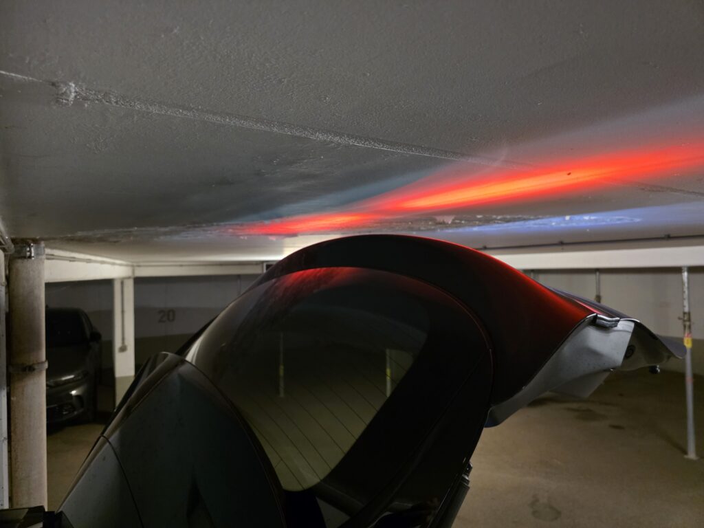 Wenn das Begrenzungslicht an ist, dann leuchtet auch hinten das rote LED-Licht. Genauso wie beim Abblendlicht, das vorne nur zusätzliche Lichter zum weißen LED-Leuchtband aktiviert. Hat man die Einstellung im Fahrzeug auf “AUTO” gestellt, aktiviert sich bei schwachen Lichtverhältnissen das Abblendlicht. Aus Sicherheitsgründen für mich relevant war es nun zu wissen, ob man hinten irgendwie beleuchtet ist. Und ja, egal in welcher aktiven Einstellung im Menü (Begrenzungslicht, Abblendlicht, Auto), das rote LED-Band hinten leuchtet immer. Es ist nur inaktiv beim Tagfahrlicht, das ich aber so nie nutzen würde. Es reicht für mich also nun die Automatik vollkommen in dem Wissen, dass man auch hinten gut erkannt wird.