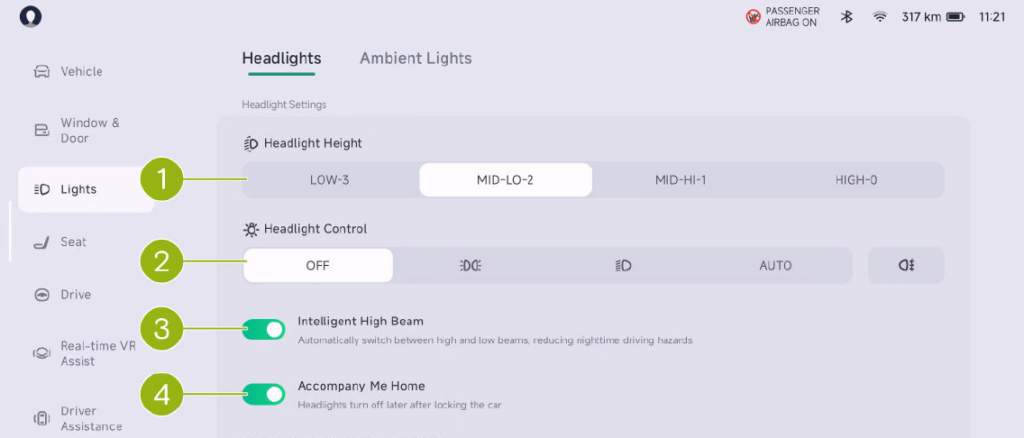 Ich habe im letzten Blog Post schon ganz kurz etwas zum Thema Licht geschrieben. In der Xpeng-Fahrer.de Community kommt immer wieder die Frage oder Feature-Request bezüglich Tagfahrlicht auf, ob hier die roten LED-Leuchten hinten am Fahrzeug aktiv sind. Ich musste dazu zuerst sogar in die Bedienungsanleitung sehen, weil im Auto in den Einstellungen zum Licht gar nicht die Rede vom Tagfahrlicht ist.