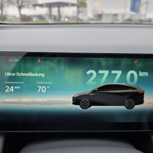 Im Alltag schlägt sich der G6 Performance ziemlich gut und ich versuche in den nächsten Absätzen ein paar Themen (Platzangebot, Schnellladungen und Kosten, Assistenzsysteme, Licht, Wächtermodus, Zubehör) zusammenzufassen, die mir bisher aufgefallen sind. Unter anderem hatte ich endlich eine DC-Ladestation in der Nähe entdeckt, die die hohe Ladeleistung des G6 etwas besser ausnutzen konnte. Das Maximum ist aber noch nicht erreicht, es sollte theoretisch sogar noch schneller klappen – aber da reden wir dann nur mehr von 2-3 Minuten Zeitunterschied.