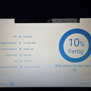 Über Weihnachten werden wohl wieder ein paar Kilometer abgespult, bin schon gespannt auf die weiteren DC-Ladungen und ob ich auch mal in Österreich einen Peak von 395 kW / 600A erreichen kann.