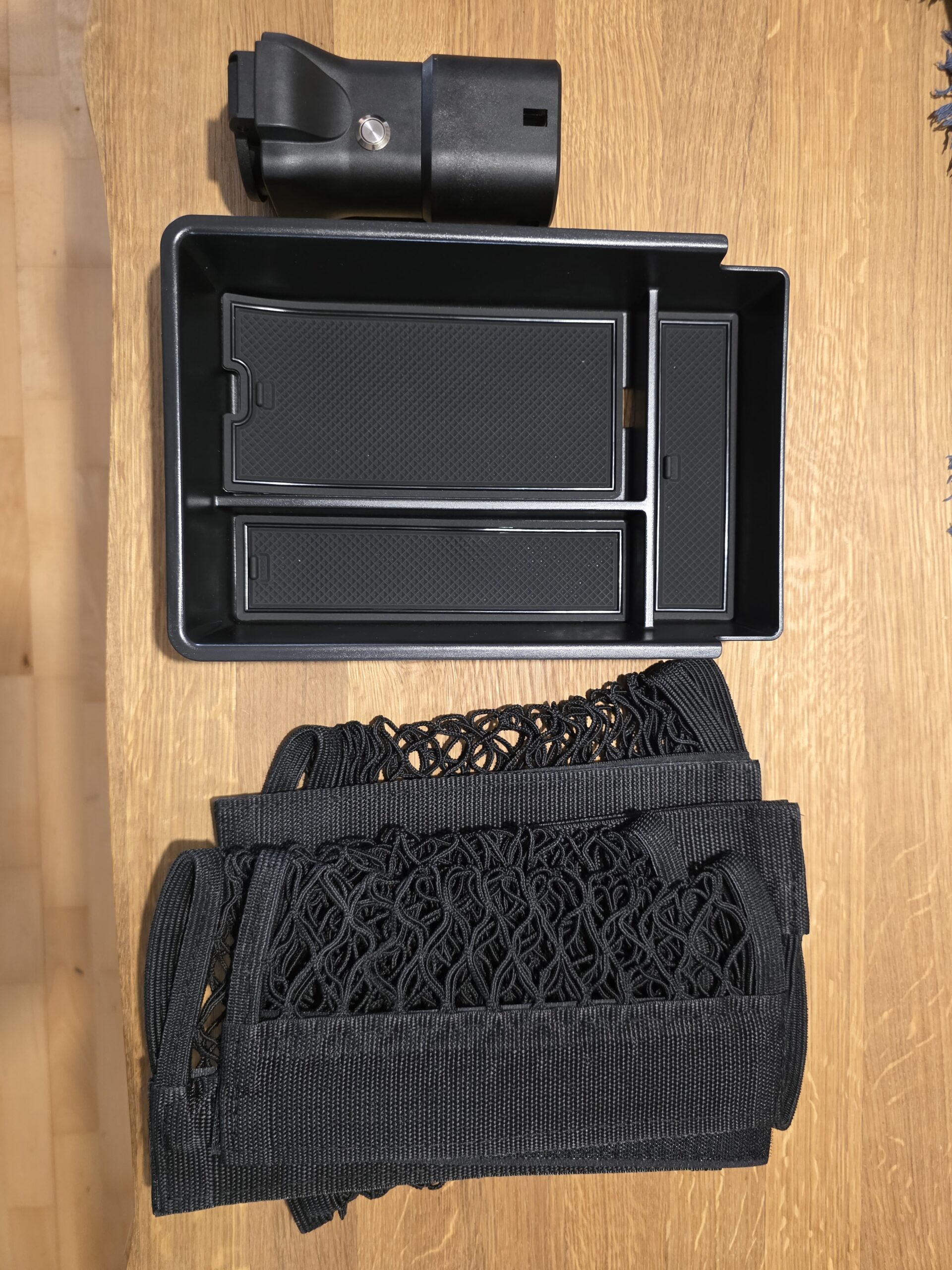An das Raumwunder IONIQ 5 mit 3m Radstand (2021 BJ Kofferraumvolumen 531l bzw. 1591l umgeklappt zzgl. 24l Frunk bei AWD) kommt der G6 (Kofferraumvolumen 571 bzw. 1374l) nicht ganz ran, aber das war mir zuvor auch bewusst. Etwas gewöhnungsbedürftig finde ich noch das Fach unter den Handy-Ladeschalen, das wir derzeit eigentlich nicht nutzen, weil man im Alltag bzw. insbesondere auch während der Fahrt da nicht (schnell genug bzw. gut) ran kommt. Also wo hin mit so Zeug aus den Hosentaschen? Die tiefe Box in der Mittelkonsole bietet viel Platz, aber ist schlecht nutzbar. Daher bestellte ich folgendes Zubehörteil, um eine Unterteilung zu schaffen: