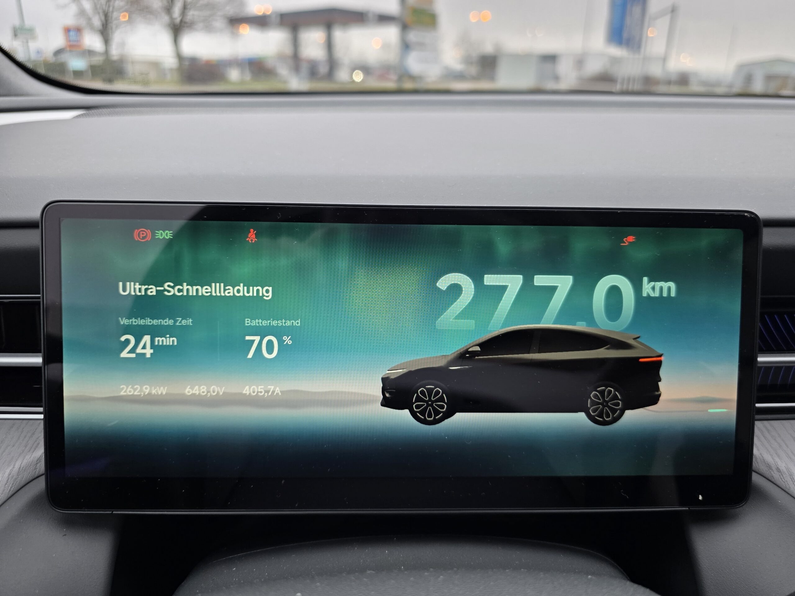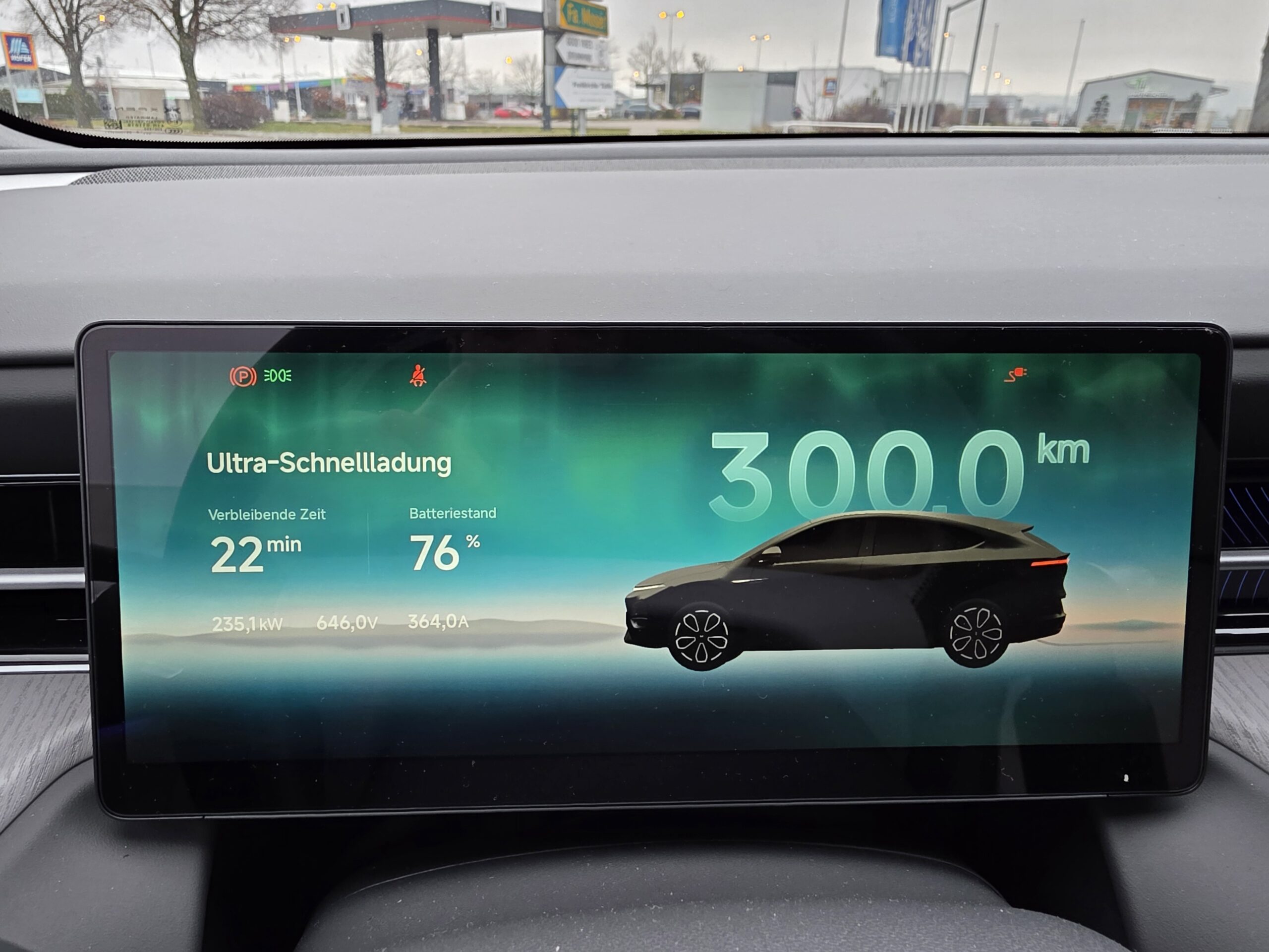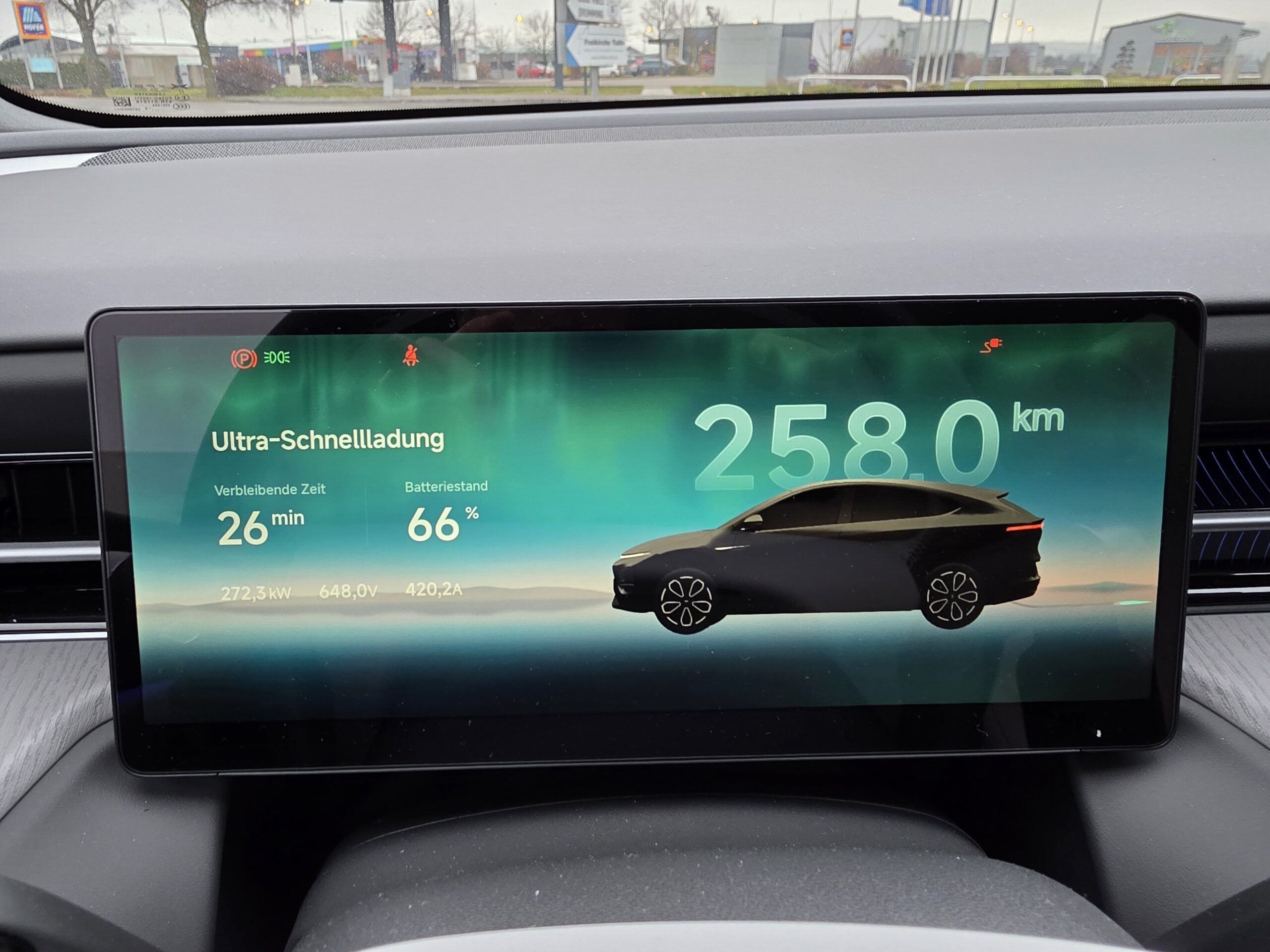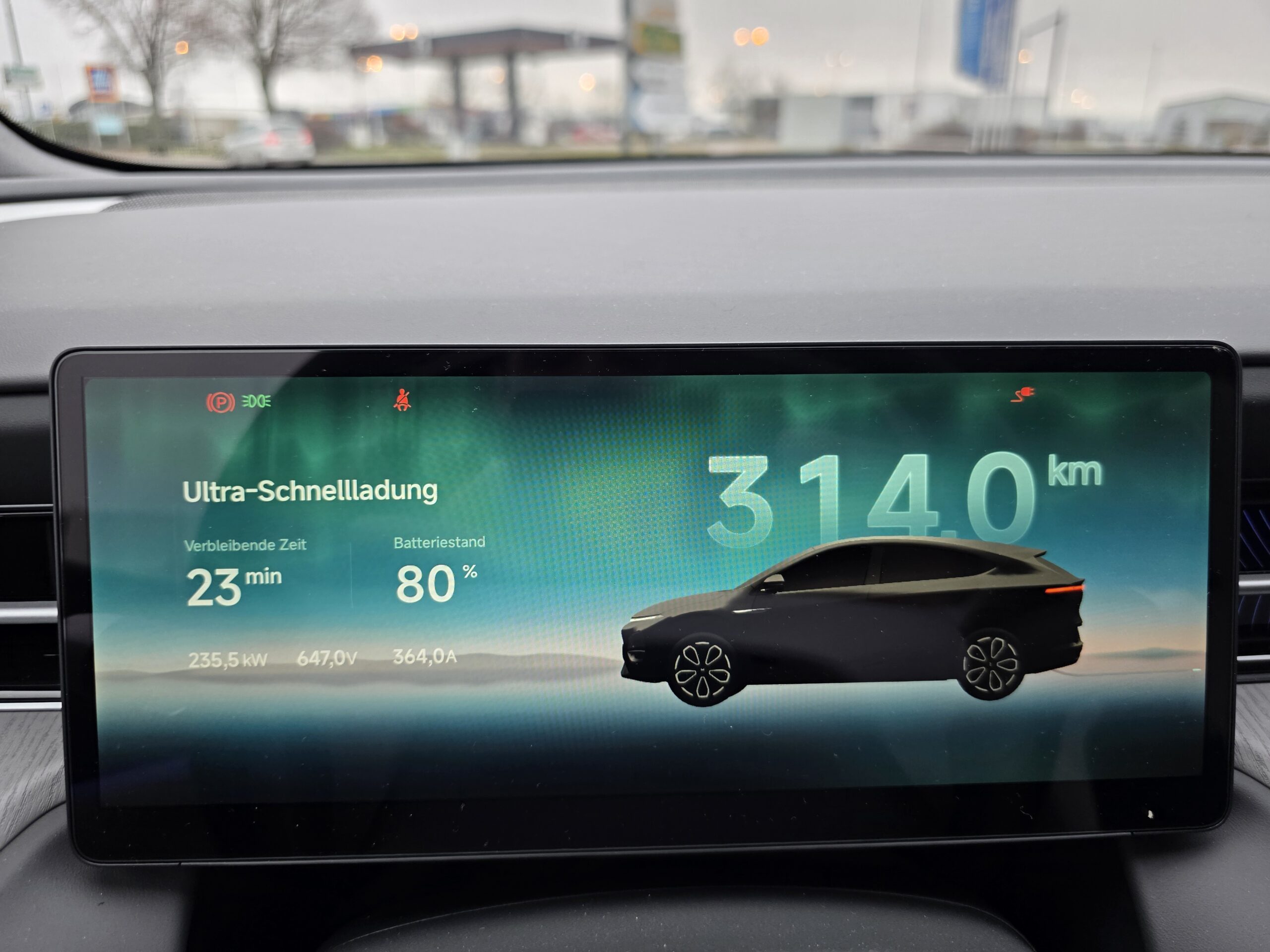 Im Alltag schlägt sich der G6 Performance ziemlich gut und ich versuche in den nächsten Absätzen ein paar Themen (Platzangebot, Schnellladungen und Kosten, Assistenzsysteme, Licht, Wächtermodus, Zubehör) zusammenzufassen, die mir bisher aufgefallen sind. Unter anderem hatte ich endlich eine DC-Ladestation in der Nähe entdeckt, die die hohe Ladeleistung des G6 etwas besser ausnutzen konnte. Das Maximum ist aber noch nicht erreicht, es sollte theoretisch sogar noch schneller klappen – aber da reden wir dann nur mehr von 2-3 Minuten Zeitunterschied.