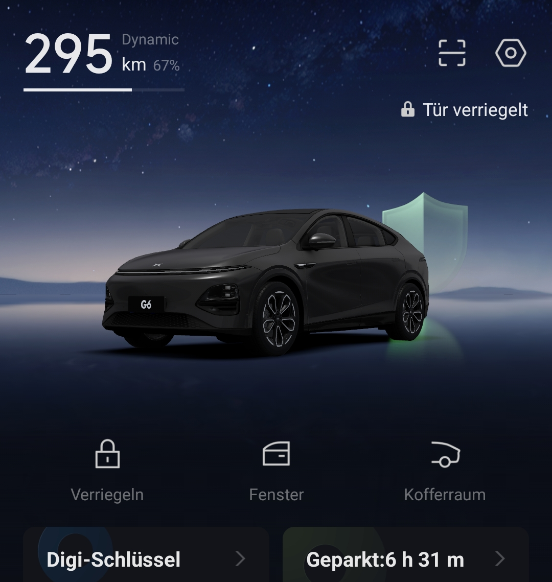 Der G6 verfügt in der aktuellsten Software-Version (5.8) über Dashcam bzw. Wächtermodus (XGUARD) -Funktionen. Letzterer überwacht das Fahrzeug (ähnlich zum Sentry-Modus bei Tesla), während dies abgestellt und verschlossen ist. Es wird die Umgebung über die Außenkameras aufgezeichnet, wenn sich Personen annähern oder das Auto berühren. Hierzu gibt es drei unterschiedliche Modi zur Einstellung der Empfindlichkeit. Details dazu habe ich bisher aber noch nicht entdeckt, es gibt auch noch keine offizielle Anleitung zu diesen Features.