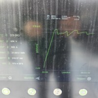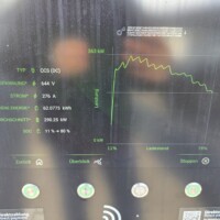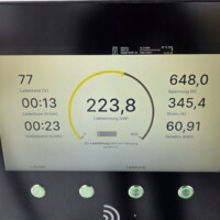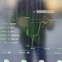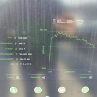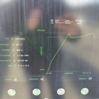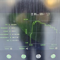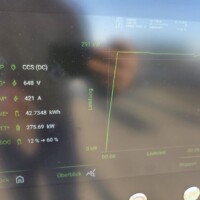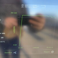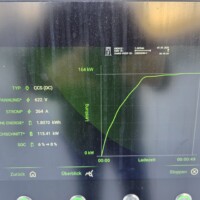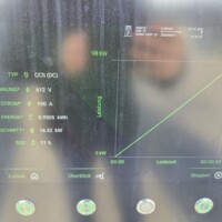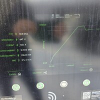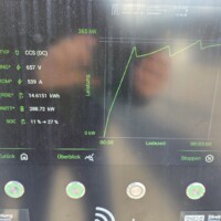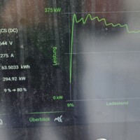 Wie man an der folgenden Ladekurve erkennen kann, waren es diesmal super Verhältnisse für ein performantes Laden mit einem Peak von 378kW – das Maximum das ich bisher bei meinem G6 erlebt habe. Theoretisch sollten aber bis zu 390 kW bei 600A (mit dem 650V Akkupack des G6) möglich sein, aber diesem Wert waren wir hier schon ziemlich nahe. Ich schätze, wäre die minimale Akkutemperatur näher den 20°C gelegen, wär sich hier vermutlich ein noch höherer Peak ausgegangen. Sorry für die dreckigen Display-Fotos, nächstes Mal mit Taschentuch abwischen 🙂