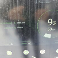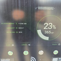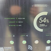 Angekommen sind wir bei einem Kilometerstand von 1631km und einem SOC von 57%. Das Display zeigte für die letzte Teilstrecke von 138,6km eine Zeit von 1h30min und einen Verbrauch von 24,8kWh/100km, wobei ich zu diesem Zeitpunkt den angezeigten Verbrauchswerten schon immer weniger vertraue. Dies deshalb, weil die Anzeige “Seit dem Start” im Display zwar die Werte anscheinend zurücksetzt, aber schon nach kurzer Fahrt dann irgendwie die durchschnittlichen Verbrauchswerte der letzten Fahrt übernimmt. Zumindest wirkt es in den meisten Fällen so — abgestellt mit 24,8kWh/100km Verbrauch, am nächsten Morgen schon nach 100m Fahrt wieder die 24,8kWh/100km in der Anzeige??