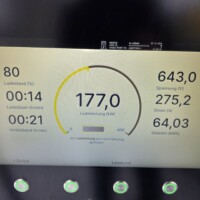 Auch hier wieder die ähnliche Ladekurve wie zuvor an der anderen HYC400 Station in Spielberg. Bei 80% wird noch mit 178kW geladen, ab ca. 84% bricht es dann auf 132kW ein. Ein guter Zeitpunkt um abzubrechen und weiter zu fahren.