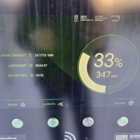 Nach 40min Einkauf, WC und kleine Stärkung ist das Symbol für die Akkuheizung immer noch aktiv und der SOC hat sich auch um 5% reduziert auf 33%? Spannend. Es war auch kein Ziel im Navi oder so eingegeben, aber die Vortemperierung kam uns dann letztlich eh zu Gute.