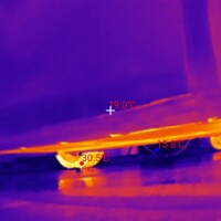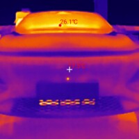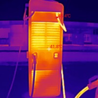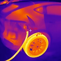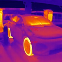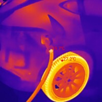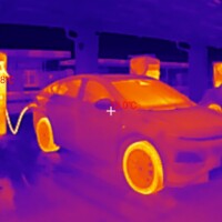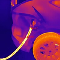 Während der Ladezeit habe ich auch ein paar Fotos mit meiner Wärmebildkamera (eine kleine fürs Handy, InfiRay P2 Pro) erstellt. Ich wollte hier weniger die Temperaturen an sich messen, sondern erkennen, welche Teile warm werden am Auto. Bzgl. der Temperaturanzeigen dieser Wärmebildkameras hier noch guter Input aus der Xpeng-Community.