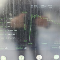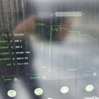 Wie man an der folgenden Ladekurve erkennen kann, waren es diesmal super Verhältnisse für ein performantes Laden mit einem Peak von 378kW – das Maximum das ich bisher bei meinem G6 erlebt habe. Theoretisch sollten aber bis zu 390 kW bei 600A (mit dem 650V Akkupack des G6) möglich sein, aber diesem Wert waren wir hier schon ziemlich nahe. Ich schätze, wäre die minimale Akkutemperatur näher den 20°C gelegen, wär sich hier vermutlich ein noch höherer Peak ausgegangen. Sorry für die dreckigen Display-Fotos, nächstes Mal mit Taschentuch abwischen 🙂